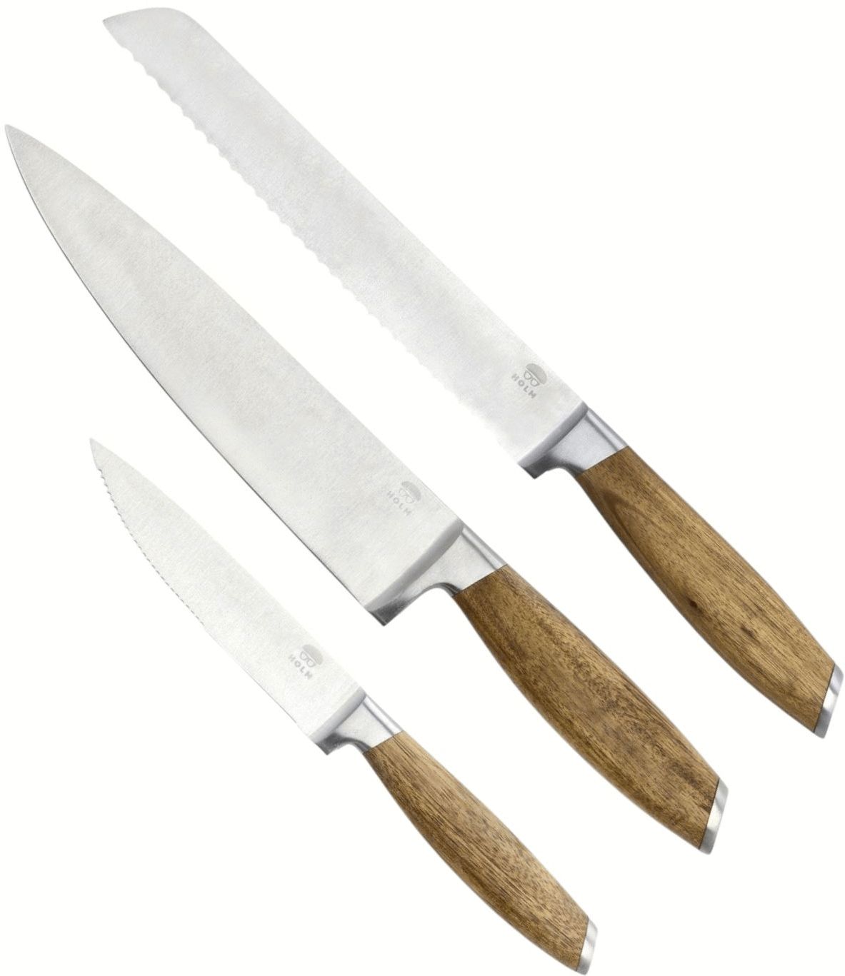 - Komplettes Messerset: Universalmesser 24 cm, Kochmesser 33 cm, Brotmesser 33 cm