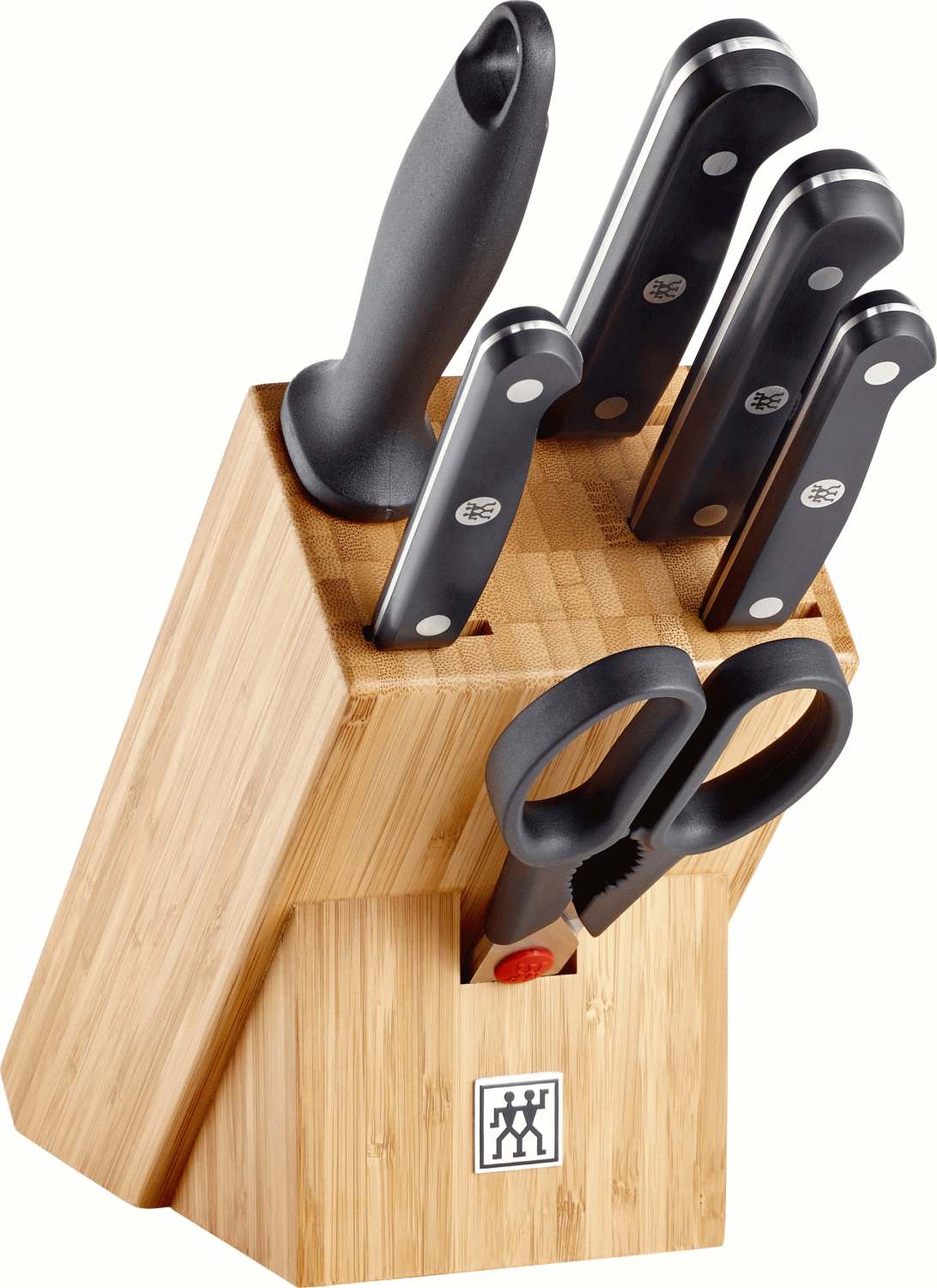 - Inklusive Universalschere, Wetzstahl und elegantem Holzmesserblock