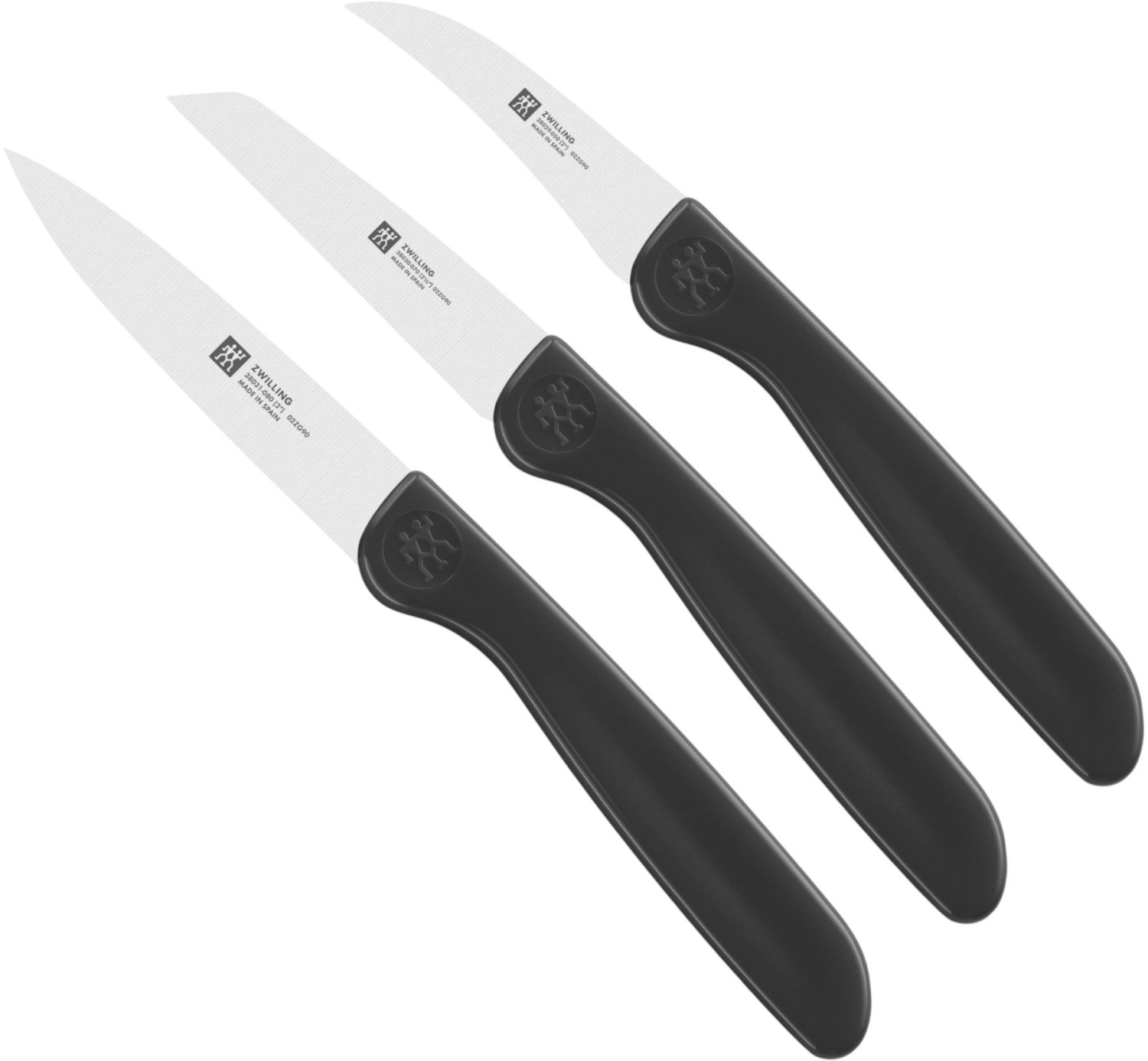 Dieses durchdachte Messerset von ZWILLING bringt professionelle Präzision in deine Küche und macht alltägliche Zubereitungsarbeiten zum Vergnügen. Mit drei spezialisierten Messern – einem Gemüsemesser, einem Schälmesser und einem Kräutermesser – deckst du alle grundlegenden Schneid- und Vorbereitungsaufgaben mühelos ab.Jedes Messer in diesem vielseitigen Set verkörpert ZWILLINGs charakteristischen Fokus auf Qualität und Funktionalität. Die Klingen aus hochwertigem 18/10 Edelstahl garantieren optimale Schärfe und außergewöhnliche Langlebigkeit. Dieses korrosionsbeständige Material behält seine Schärfe auch bei wiederholtem Gebrauch und macht die Messer zu zuverlässigen Werkzeugen in deiner Küchenschublade.