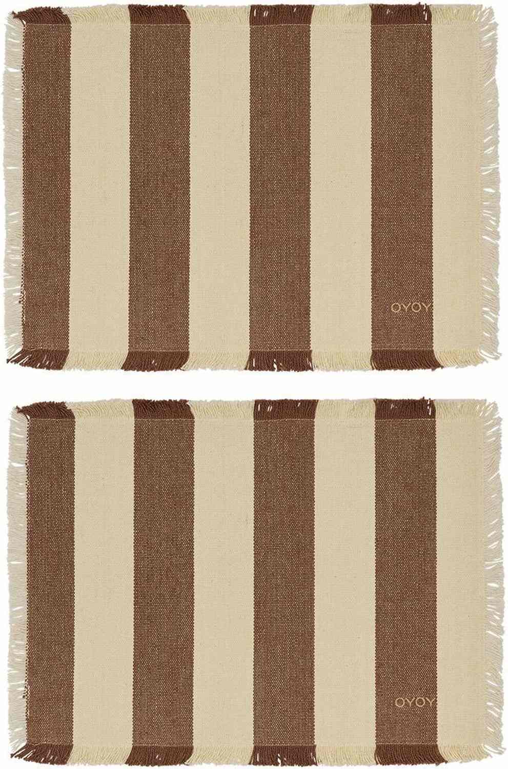 Diese handgewebten Tischsets von OYOY vereinen skandinavische Eleganz mit praktischer Funktionalität für deinen Esstisch. Die warme Farbkombination aus Braun und Off-White verleiht jedem Tischgedeck eine gemütliche und einladende Atmosphäre, die sowohl zu alltäglichen Mahlzeiten als auch zu besonderen Anlässen passt.Die Toppu Tischsets werden aus 100% Bio-Baumwolle in robuster Qualität gefertigt, die sowohl Langlebigkeit als auch Komfort am Tisch gewährleistet. Das charakteristische Design mit dekorativen Fransen an den Enden fügt ein subtiles dekoratives Element hinzu, das perfekt zu modernen wie klassischen Tischdekorationen harmoniert. Die natürliche Textur und die erdigen Farbtöne schaffen eine behagliche Stimmung, die deine Gäste sofort willkommen heißt.
