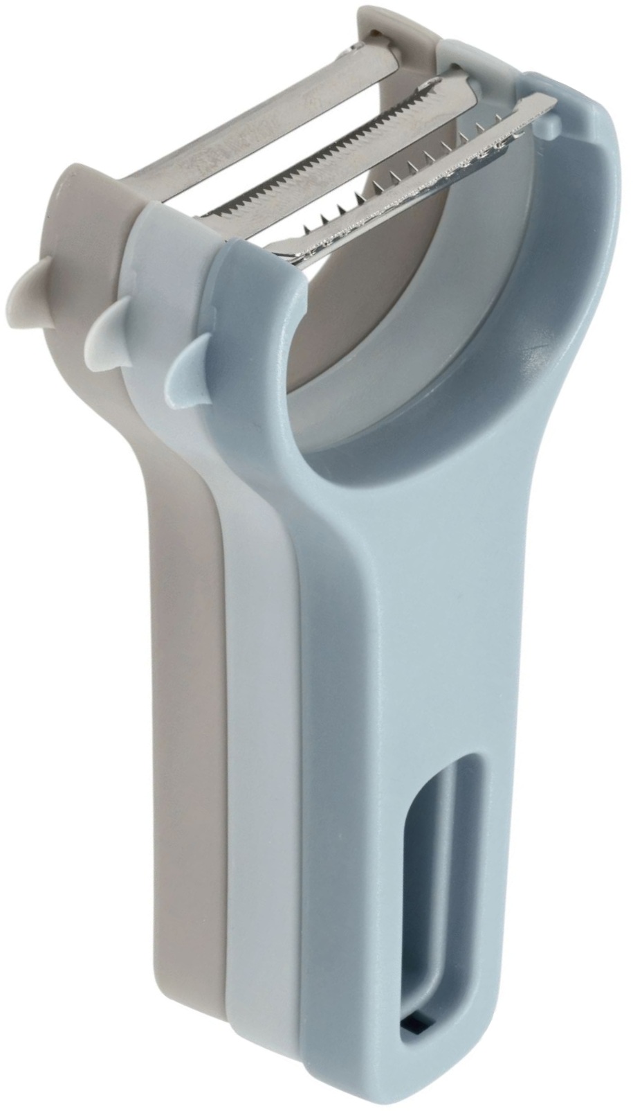 - Drei verschiedene Schäler mit spezialisierten Klingen: glatt, fein gezackt und grob gezackt