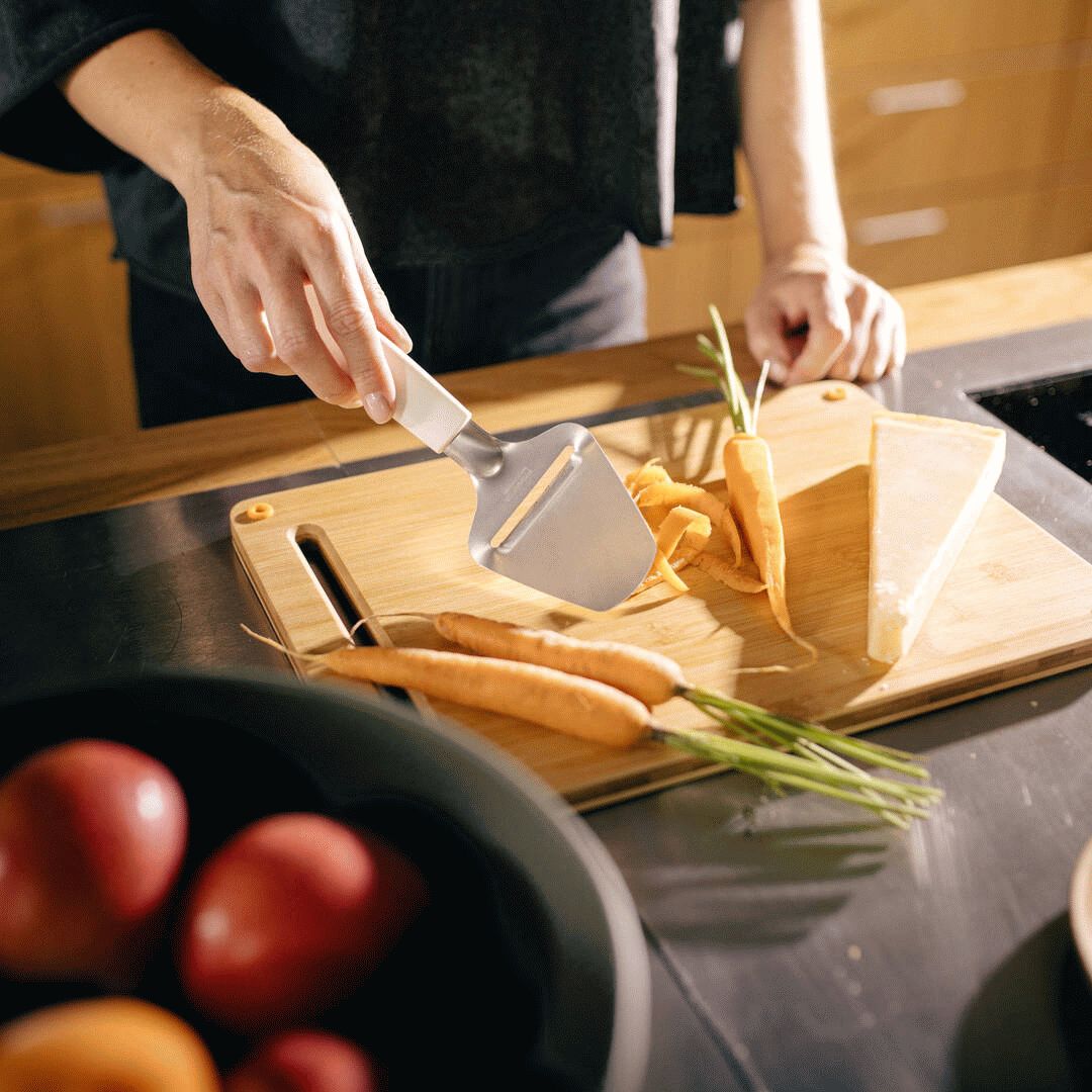 Die perfekten Abmessungen von 300 mm Länge und 80 mm Breite schaffen die ideale Balance zwischen Wendigkeit und Effizienz. Mit einer Höhe von nur 20 mm und einem Gewicht von lediglich 75 g ist der Käsehobel besonders handlich und platzsparend zu verstauen. Die praktische Größe macht ihn perfekt für den täglichen Gebrauch und ermöglicht eine einfache Aufbewahrung in deiner Küchenschublade neben anderen Küchengeräten.