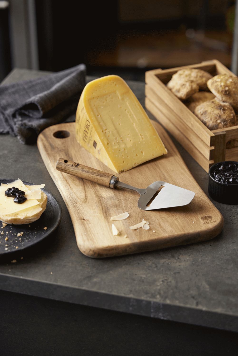 Die 22,5 cm lange Konstruktion vereint durchdachte Funktionalität mit zeitlosem Design. Das rostfreie Stahlblatt schneidet mühelos perfekte Scheiben sowohl von hartem als auch weichem Käse, während der ergonomisch geformte Griff aus FSC®-zertifiziertem Akazienholz für angenehme Handhabung sorgt. Die natürliche Maserung des Holzes macht jeden Käsehobel zu einem individuellen Unikat und verleiht diesem alltäglichen Küchengerät eine besondere Exklusivität.