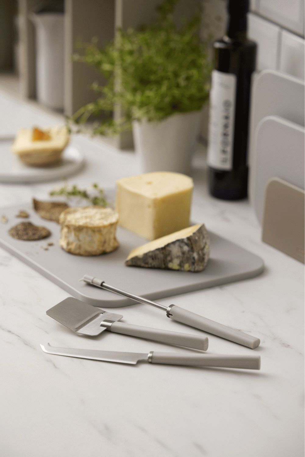 - Komplettes 3-teiliges Käse-Set in eleganter Hummus-Farbe