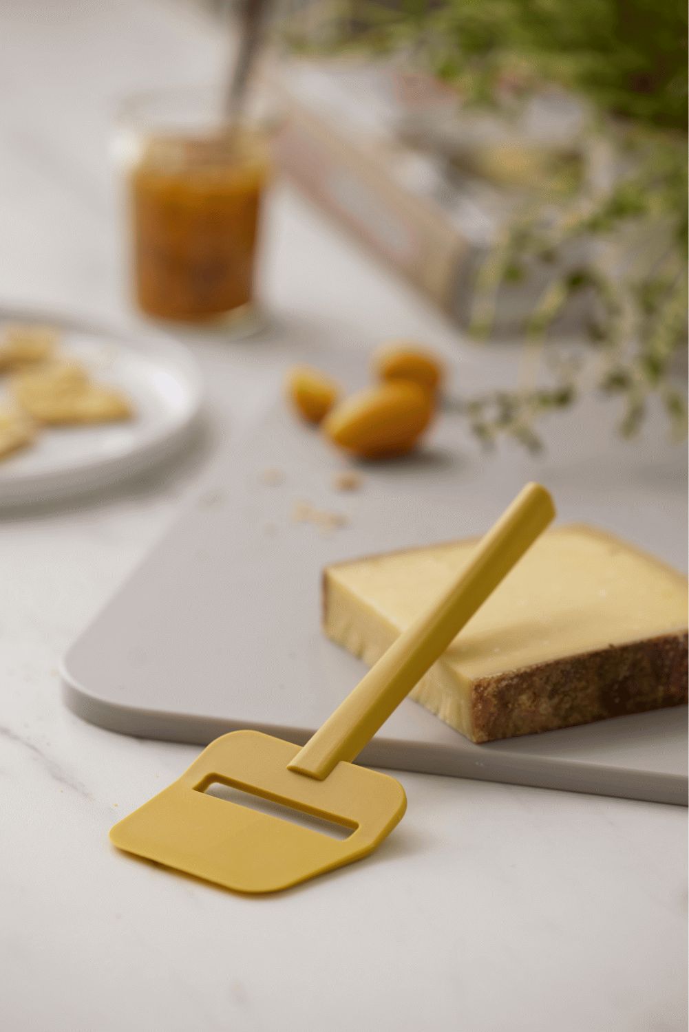Die gelungene Materialkombination aus robustem Kunststoff in der trendigen Curry-Farbe und hochwertigem rostfreiem Edelstahl verleiht dem Käsehobel nicht nur eine ansprechende Optik, sondern auch ein angenehmes Gewicht. Diese durchdachte Gewichtsverteilung sorgt für eine optimale Balance in deiner Hand und macht das Käseschneiden zu einer präzisen und entspannten Aufgabe.