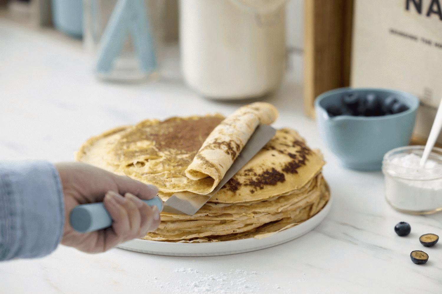 Das lange, präzise Blatt mit seinem strategisch platzierten Knick macht diesen Pfannenwender zum idealen Werkzeug für das mühelose und präzise Wenden von Pfannkuchen. Die besondere Blattform eignet sich aber auch hervorragend zum gleichmäßigen Verstreichen von Glasur auf Kuchen und Torten, während das schlanke Profil dir optimale Kontrolle und Manövrierbarkeit bei delikaten Aufgaben bietet.