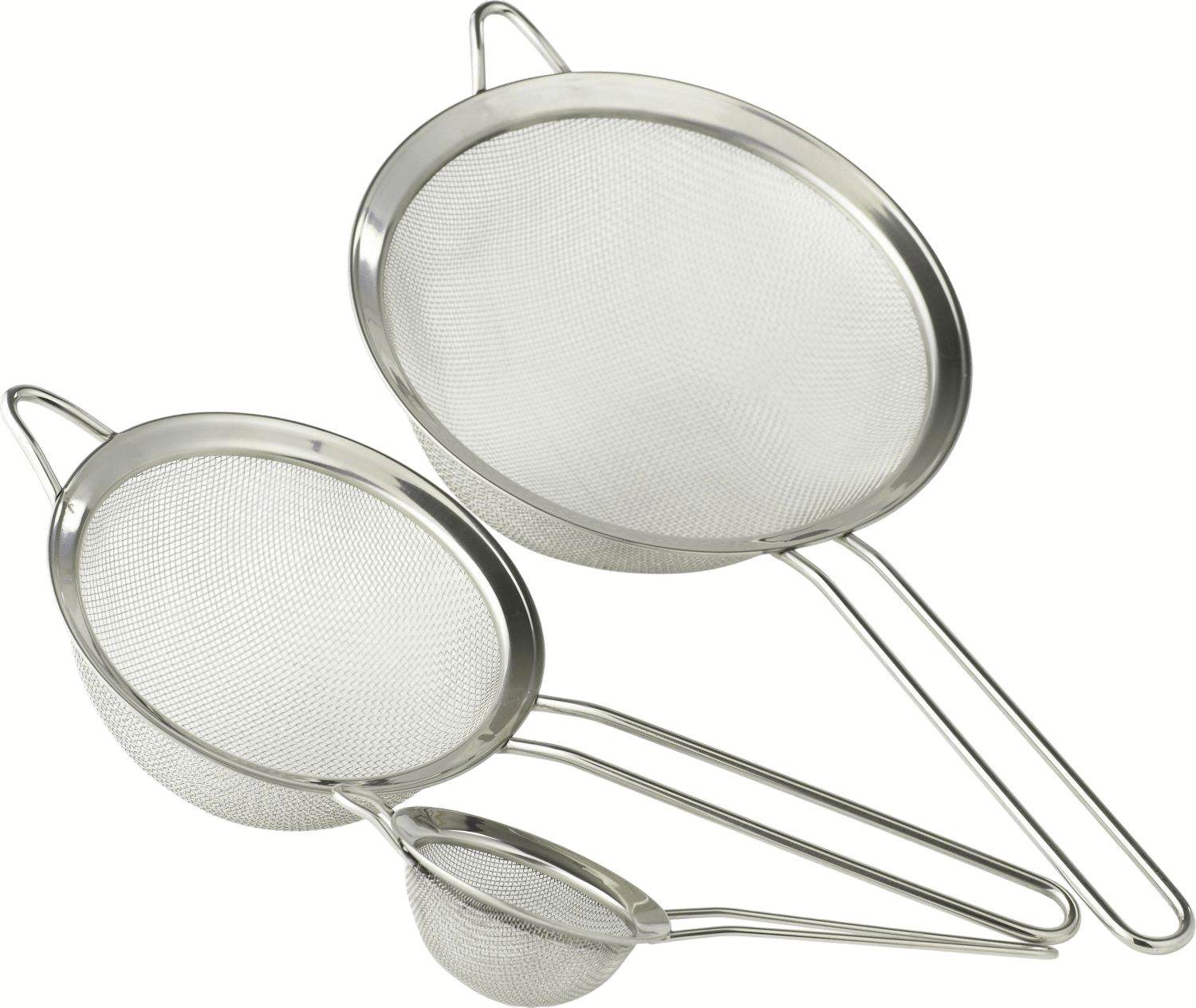 Die drei Siebe mit Durchmessern von 8 cm, 14 cm und 20 cm bieten dir die Flexibilität für sowohl kleine als auch große Kochprojekte. Das einfache Drahtnetz in jedem Sieb gewährleistet eine effiziente und gleichmäßige Siebung deiner Zutaten, egal ob du Brot backst, hausgemachte Pasta zubereitest oder raffinierte Desserts kreierst. Die robuste Konstruktion aus rostfreiem Stahl garantiert lange Haltbarkeit und Widerstandsfähigkeit gegen den täglichen Gebrauch in der aktiven Küche.