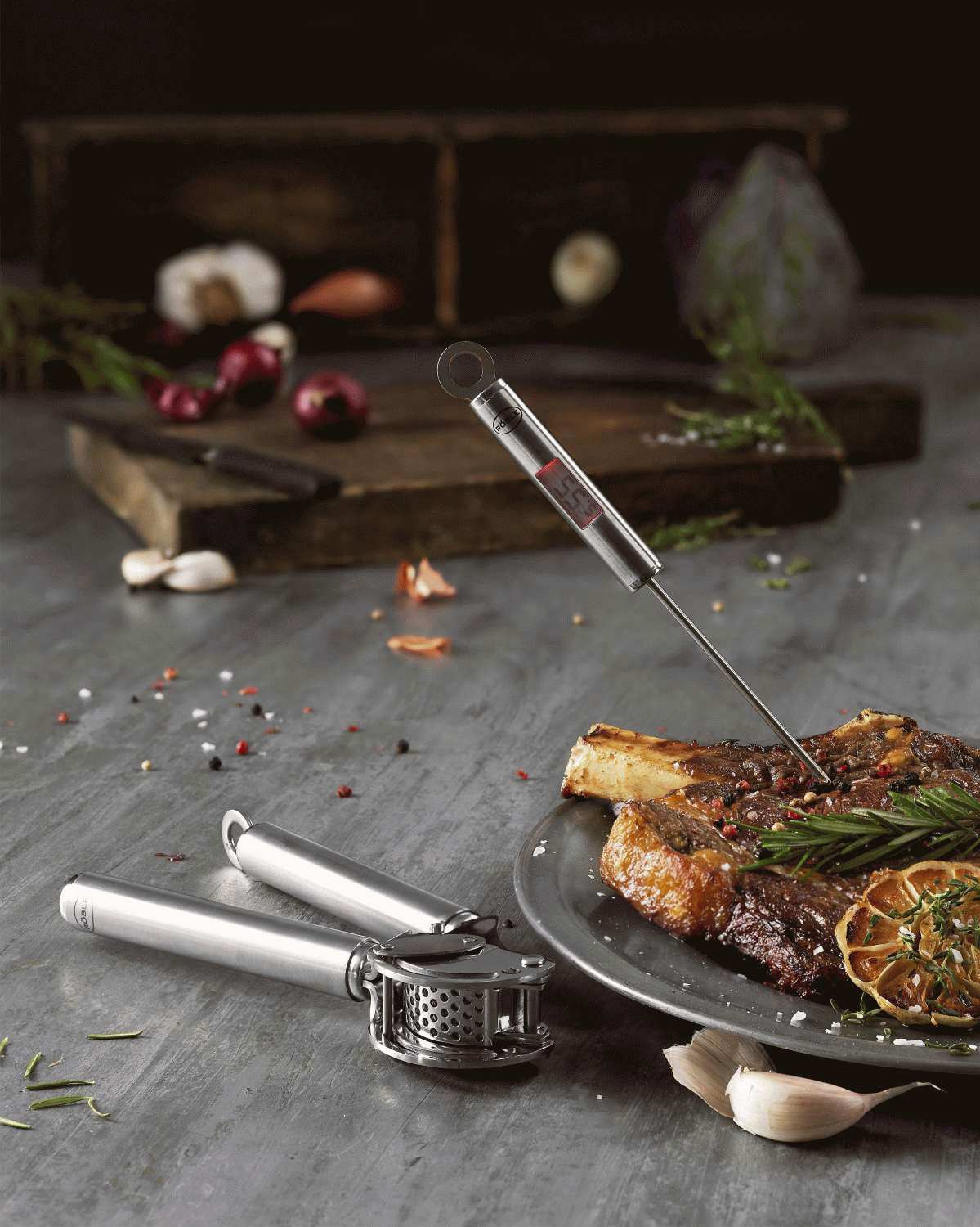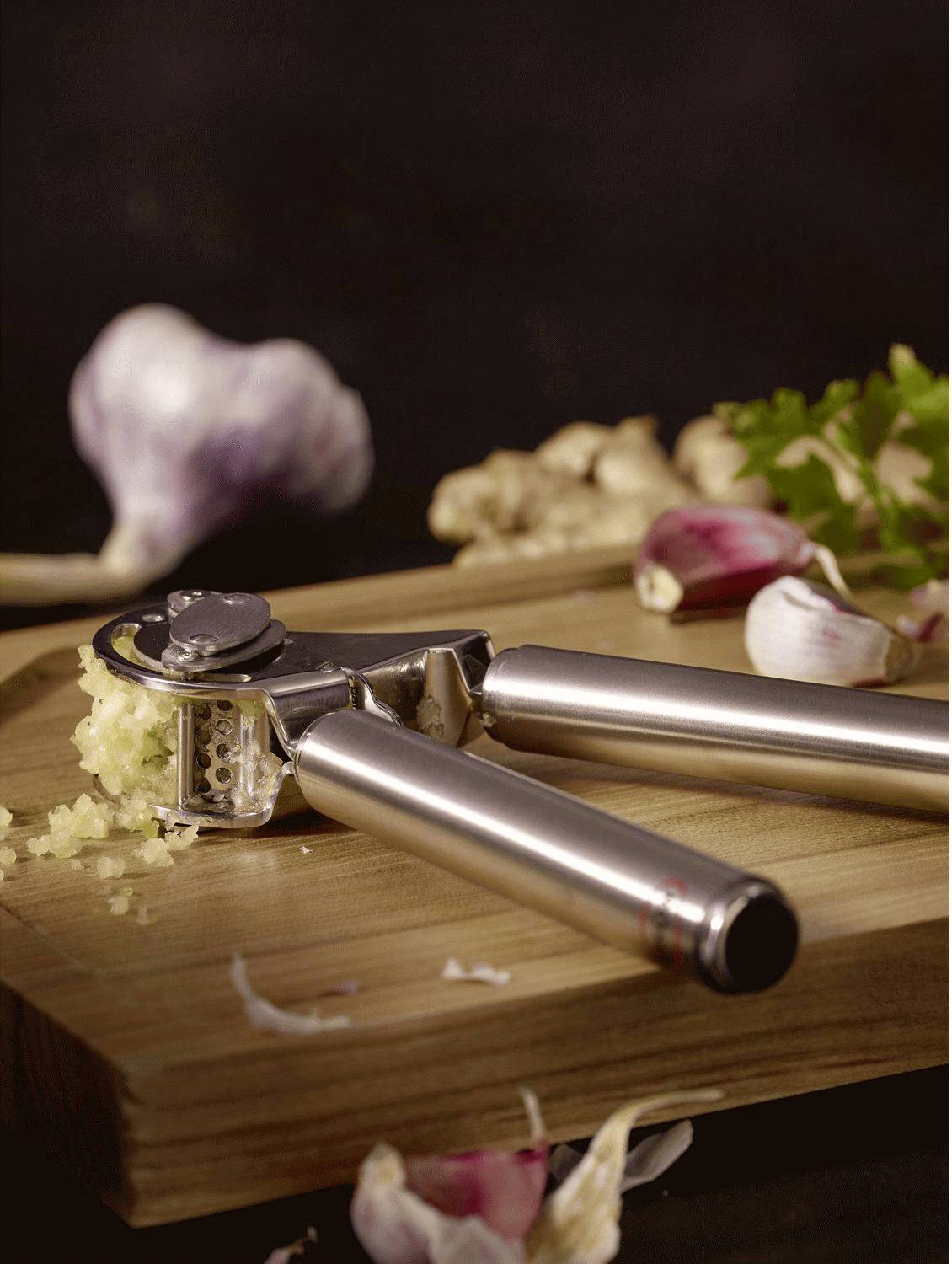 Der intelligente Mechanismus der Presse sorgt dafür, dass selbst die härtesten Knoblauchzehen mit minimalem Kraftaufwand gepresst werden, sodass du das volle Aroma ohne Anstrengung herausholst. Die hochwertige Verarbeitung aus langlebigem Edelstahl verkörpert Rösles bekannte Qualität und deutsche Ingenieurskunst, die für Langlebigkeit und Zuverlässigkeit steht.