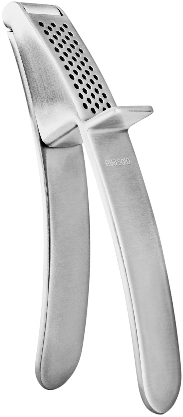 Mit dieser praktischen Knoblauchpresse von Eva Solo machst du das Zerkleinern von Knoblauch zu einer mühelosen Angelegenheit. Das durchdachte Design ermöglicht dir zwei verschiedene Anwendungsmöglichkeiten: Du kannst die Presse bequem in der Hand verwenden oder sie auf die Arbeitsplatte stellen und mit einem leichten Druck auf die Oberseite bedienen.Das ergonomische Griffdesign wurde speziell entwickelt, um dir maximalen Komfort zu bieten und die Kraftverteilung gleichmäßig zu gestalten. Dadurch sparst du nicht nur Energie, sondern behältst auch die volle Kontrolle über den Pressvorgang. Die hochwertige Verarbeitung aus robustem, rostfreiem Stahl garantiert dir eine lange Lebensdauer und höchste Hygiene in deiner Küche.