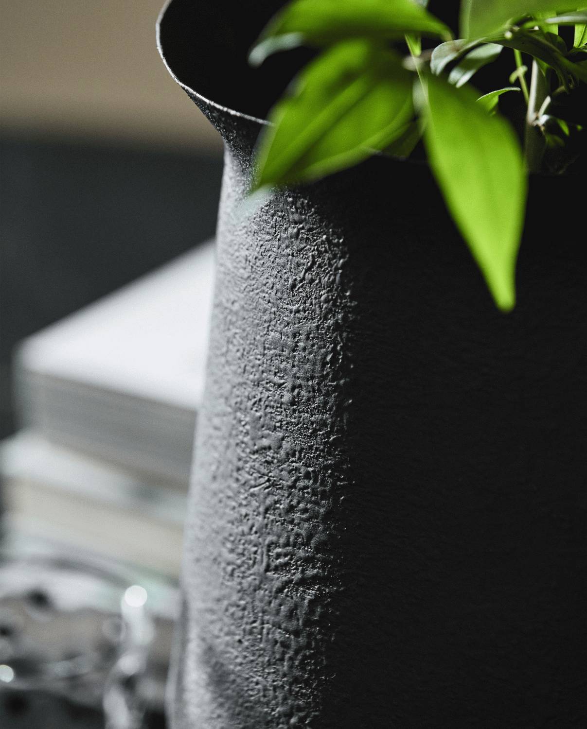 - Skulpturale Topfhülle aus schwarz lackiertem Eisen