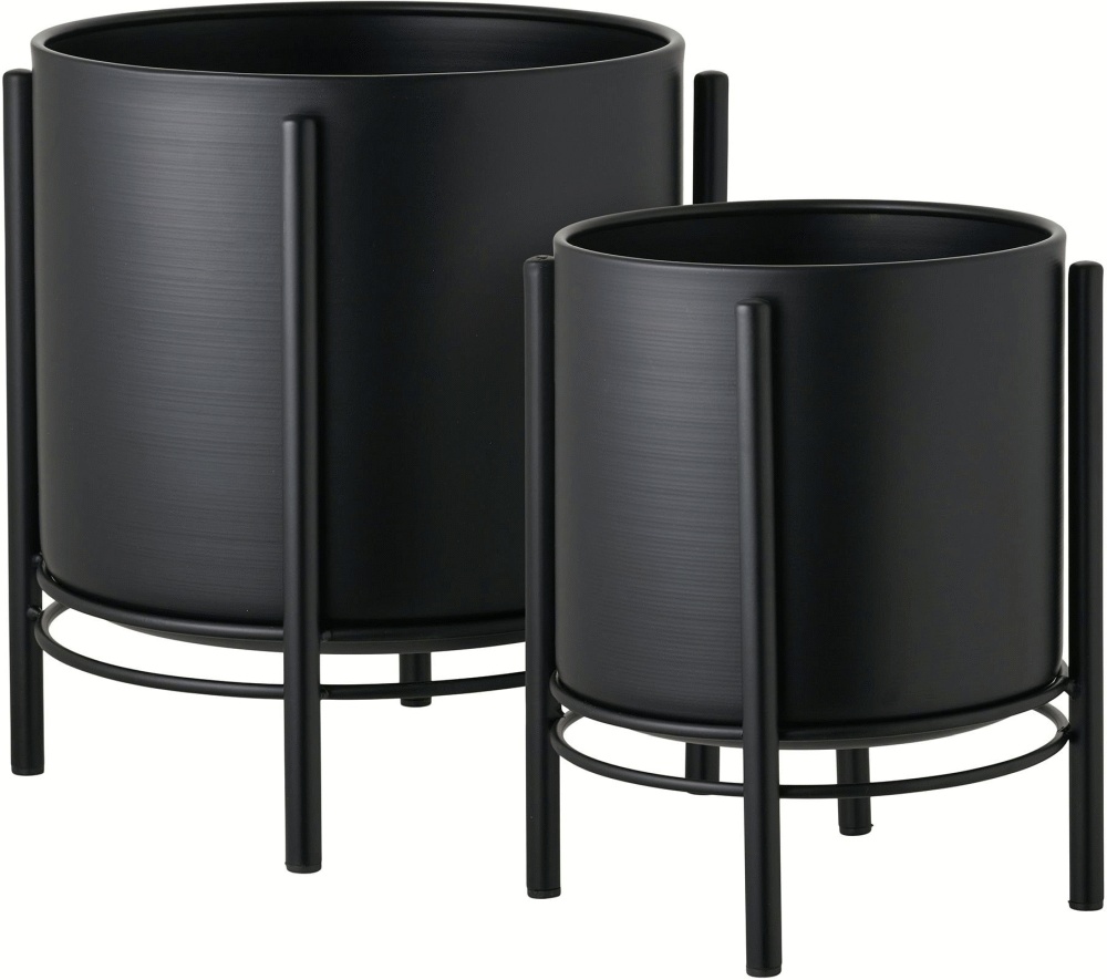 Mit diesem eleganten 2er-Set Blumentöpfe von House Nordic bringst du skandinavische Eleganz und natürliche Frische in dein Zuhause. Die beiden Pflanzgefäße aus robustem Stahl in mattem Schwarz vereinen moderne Ästhetik mit praktischer Funktionalität und schaffen perfekte grüne Akzente für drinnen und draußen.Das durchdachte Set besteht aus einem kleineren und einem größeren Blumentopf, die durch ihre geometrischen Linien und minimalistische Formgebung überzeugen. Die matte schwarze Oberfläche verleiht beiden Töpfen eine zeitlose Sophistication, die sich harmonisch in jede moderne Einrichtung einfügt. Das hochwertige Stahlmaterial garantiert nicht nur außergewöhnliche Langlebigkeit, sondern auch Wetterfestigkeit – ideal für Balkon, Terrasse oder Wohnbereich.