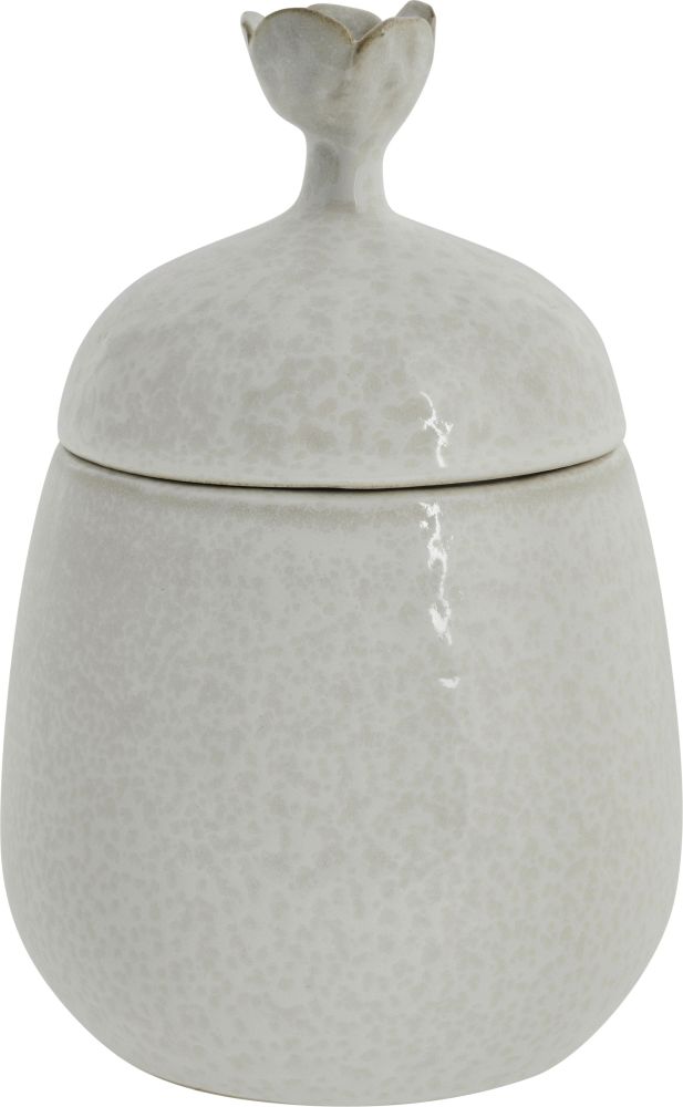 Diese wunderschöne Helinna Aufbewahrungsdose von Lene Bjerre verbindet praktische Funktionalität mit zeitloser Eleganz in einem schlichten, weißen Design. Gefertigt aus glasierter Keramik mit einer seidenweichen Oberfläche, verleiht sie jedem Raum einen luxuriösen Ausdruck. Der dekorative Deckel wird von einem blütenförmigen Griff gekrönt, der dem reinen skandinavischen Design einen femininen und raffinierten Touch verleiht.Diese vielseitige Dose ist perfekt für die Aufbewahrung kleiner Gegenstände in der Küche, wo sie Gewürze, Tee oder Kaffee aufnehmen kann. Im Badezimmer eignet sie sich ideal für Wattepads, Haargummis oder andere Pflegeprodukte, während sie im Wohnzimmer als reine Dekoration oder zur Aufbewahrung von Kleinigkeiten wie Schlüsseln oder Schmuck dient. Die weiße Farbe macht es dir leicht, sie in jeden Einrichtungsstil zu integrieren – von modern minimalistisch bis klassisch skandinavisch.