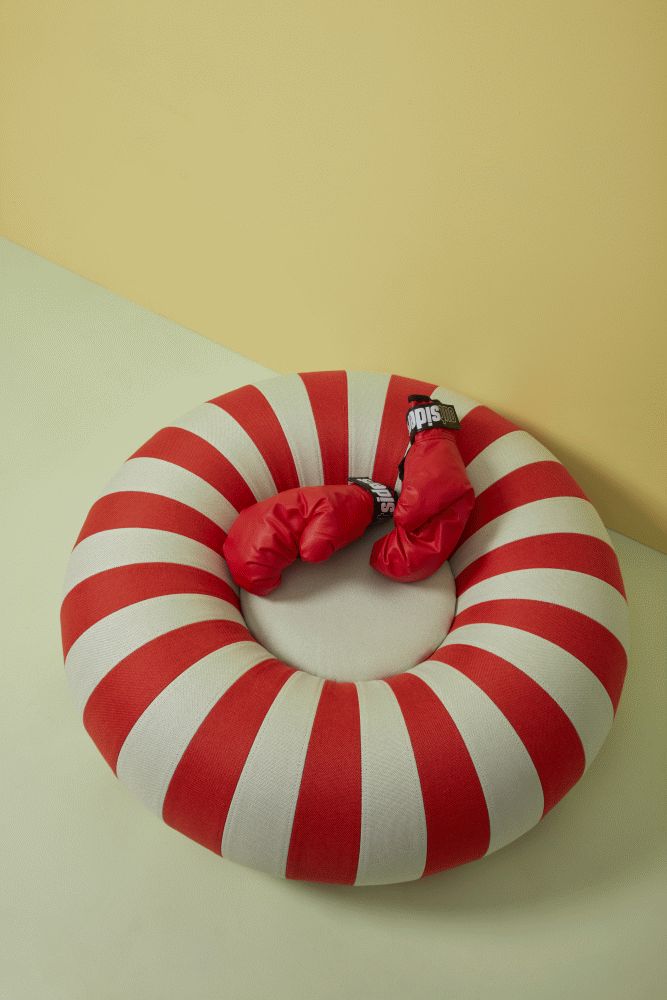 Mit dem Studio About Float Pouf holst du dir ein verspieltes und zugleich funktionales Möbelstück ins Haus, das durch sein charakteristisches Donut-Design sofort ins Auge fällt. Die aufblasbare Sitzgelegenheit in der Farbkombination Rot/Mint verbindet praktisches Denken mit einem visuellen Ausdruck, der Energie und Kontrast in jeden Raum bringt. Ob im Wohnzimmer, Büro, Flur oder an anderen Orten, wo du spontan zusätzliche Sitzplätze benötigst – dieser Pouf passt sich flexibel deinen Bedürfnissen an.Das aufblasbare Design macht den Float Pouf besonders transportfreundlich und einfach zu verstauen. Er wird als Flatpack geliefert und lässt sich unkompliziert montieren: Du platzierst den inneren Schlauch im Bezug, schließt den Reißverschluss und bläst ihn mit einem Kompressor oder einer gewöhnlichen Ball- oder Fahrradpumpe auf. Der innere Schlauch mag auf den ersten Blick klein im Verhältnis zum Bezug wirken, doch er dehnt sich beim Aufblasen erheblich aus und sitzt perfekt, sobald er vollständig aufgepumpt ist.