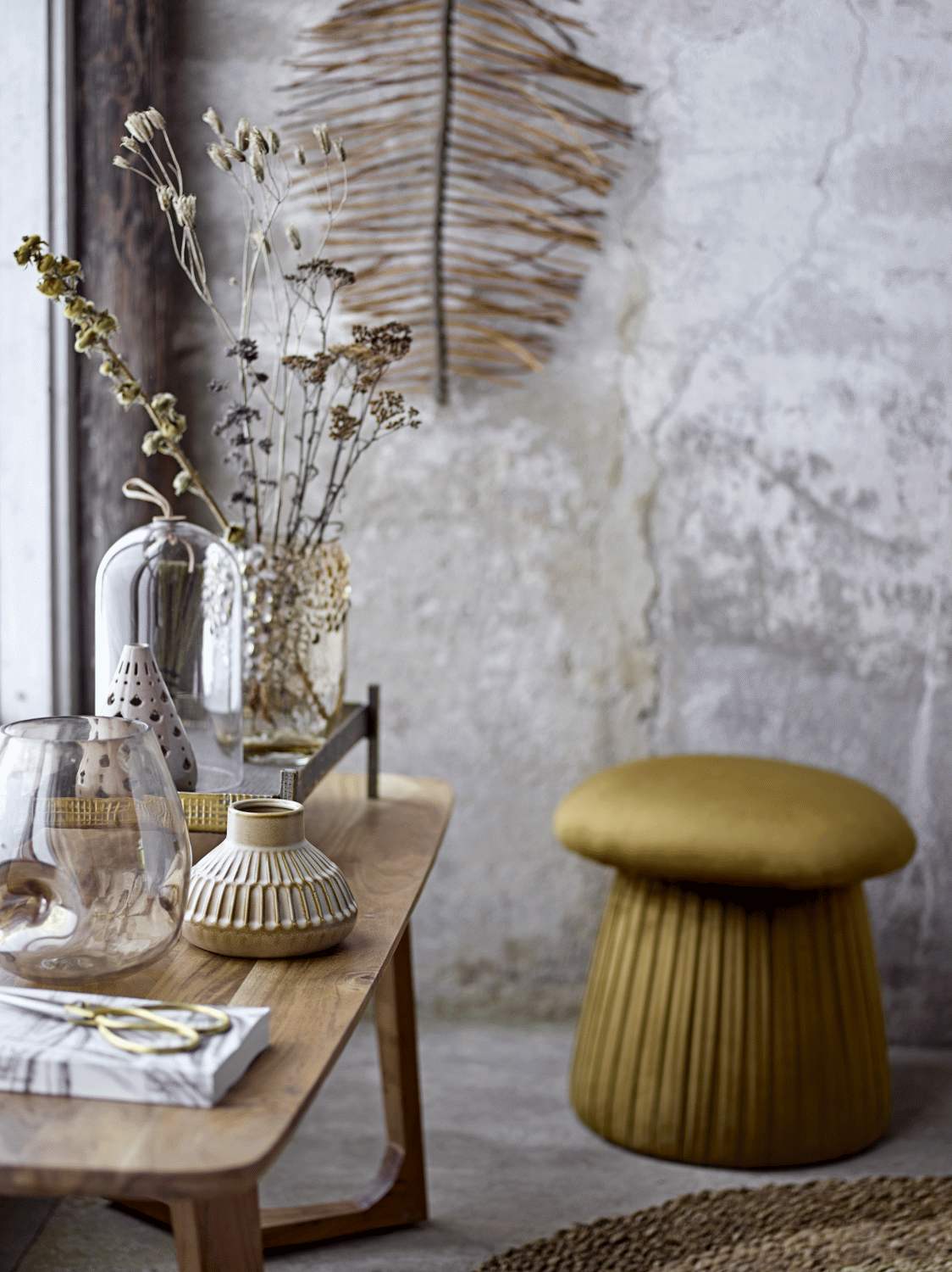 Mit diesem außergewöhnlichen Hocker in Pilzform bringst du eine perfekte Mischung aus skandinavischem Design und modernem Komfort in dein Zuhause. Der Roberta Pouf von Bloomingville beeindruckt durch seine organische Form, die sofort zum Blickfang in jedem Raum wird und dabei sowohl praktische als auch ästhetische Funktionen erfüllt.Die samtige Velours-Oberfläche in der warmen curry-braunen Farbgebung verleiht diesem Designstück eine luxuriöse Haptik und fügt natürliche Erdtöne in deine Einrichtung ein. Mit seinem Durchmesser von 44 cm bietet der Pouf vielseitige Verwendungsmöglichkeiten – ob als zusätzliche Sitzgelegenheit für Gäste, als bequeme Fußstütze oder als skulpturales Dekoelement im Wohnzimmer, Schlafzimmer oder in der Leseecke.