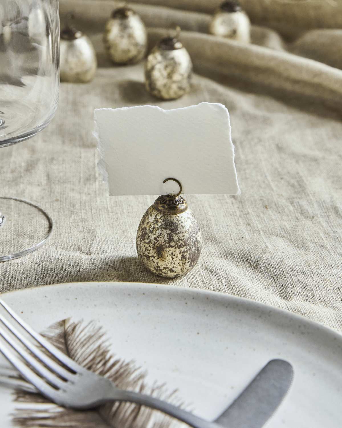 Da jeder Kartenhalter in Handarbeit gefertigt wird, können natürliche Variationen in Finish, Farbe und Größe auftreten. Diese kleinen Unterschiede verleihen jedem Stück individuellen Charakter und Authentizität – ein Zeichen echter Handwerkskunst. Die kompakten Maße machen die Kartenhalter besonders flexibel einsetzbar: Sie nehmen auf dem Tisch nicht viel Platz ein und lassen sich problemlos zwischen Geschirr und Dekoration arrangieren.