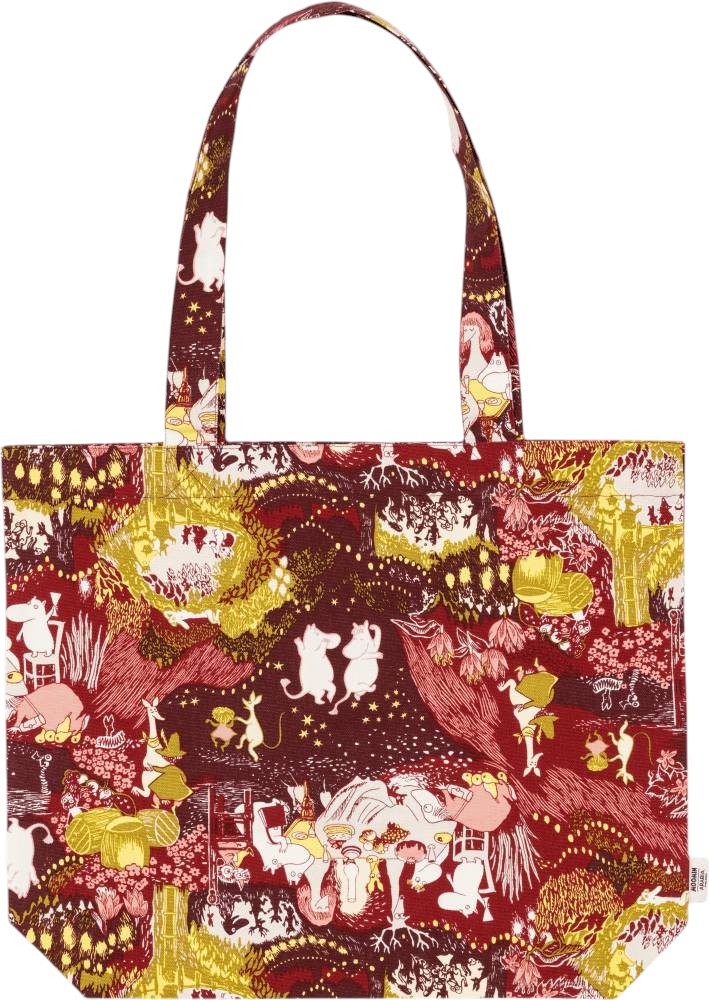Mit dieser bezaubernden Stofftasche von Moomin Arabia holst du dir die magische Welt der Mumins direkt in deinen Alltag. Die Tasche ist Teil der besonderen Kollektion "Festliche Momente", die das 80-jährige Jubiläum der geliebten Charaktere feiert und die Essenz von Zusammenhalt und Freundschaft durch Tove Janssons zeitloses Universum einfängt.Das charmante Motiv zeigt die Mumins in ihren festlichsten Momenten, wo Feuerwerk und Pfannkuchen eine Atmosphäre purer Freude und Gemütlichkeit schaffen. Diese praktische Tasche im Format 45x35 cm begleitet dich perfekt beim Einkaufen, bei Strandausflügen oder einfach als stilvoller Alltagsbegleiter. Das Design vermittelt die Wärme und Liebe, die die Mumins zu einem geliebten Teil der skandinavischen Kultur durch Generationen gemacht haben.