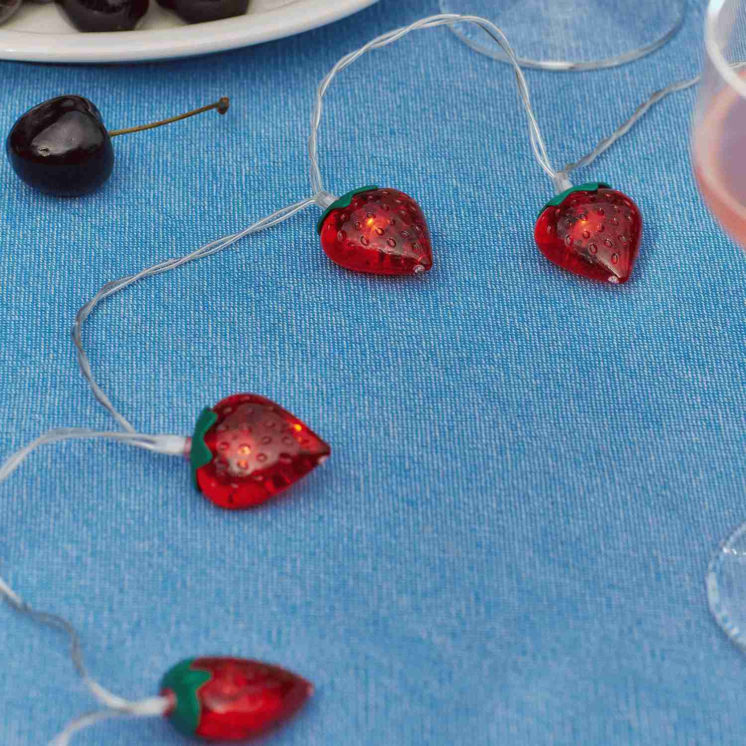 - Dekorative Lichterkette mit 10 Erdbeerfiguren in Rot und Grün