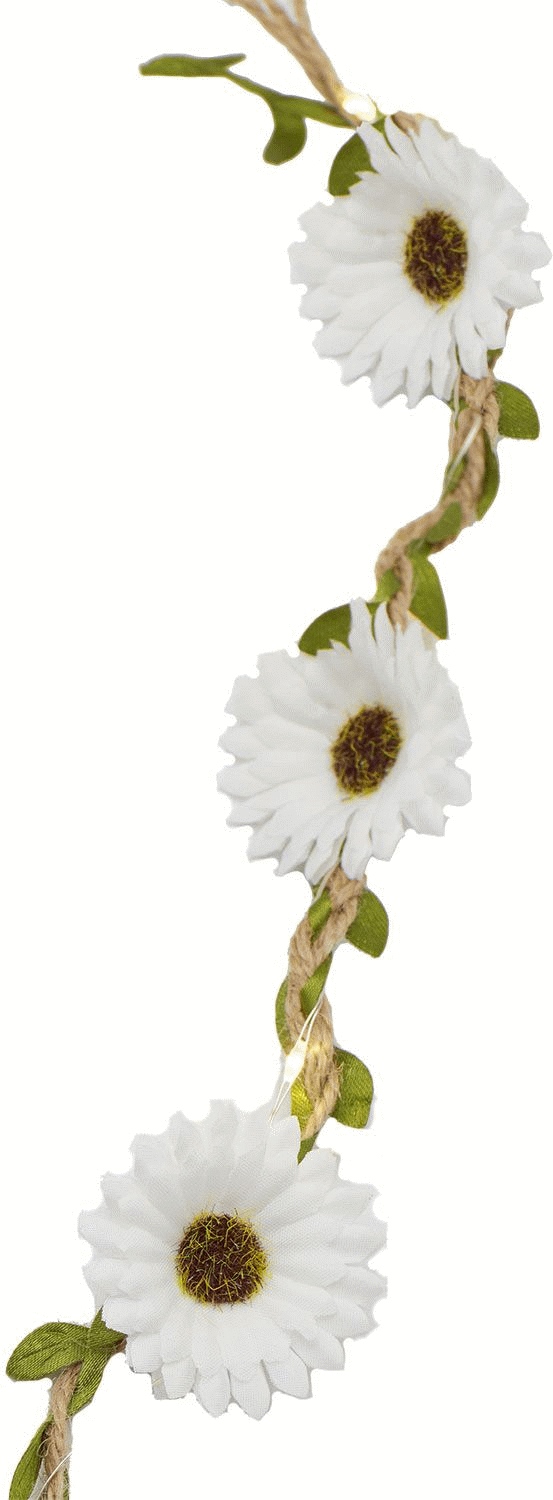 Die Lichterkette ist mit 20 naturgetreuen Blüten in harmonischen Nuancen von Weiß und Grün gestaltet, die einen leichten und luftigen Eindruck vermitteln. Jede Blüte wurde sorgfältig arrangiert und mit rustikalem Twine verflochten, was dem Design eine authentische, handgefertigte Note verleiht. Zwischen den Blüten sind 20 warmweiße LED-Lichter dezent platziert, die ein sanftes, angenehmes Licht ausstrahlen. So entsteht Wärme und Behaglichkeit in deinem Zuhause, ohne dass die Optik zu dominant wirkt.