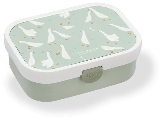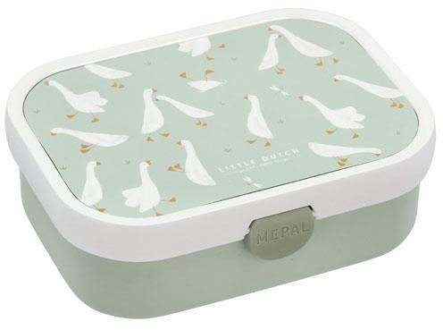 Robuste und geräumige Mepal-Lunchbox mit Gänsemotiv. Die Brotdose hat einen cleveren und effektiven Schließmechanismus, der für Kinder leicht zu bedienen ist. Die Brotdose misst 17,5 x 13 x 6 cm und enthält eine kleine Gabel und einen herausnehmbaren Einsatz mit zwei kleinen Fächern.Campus Goose Brotdose