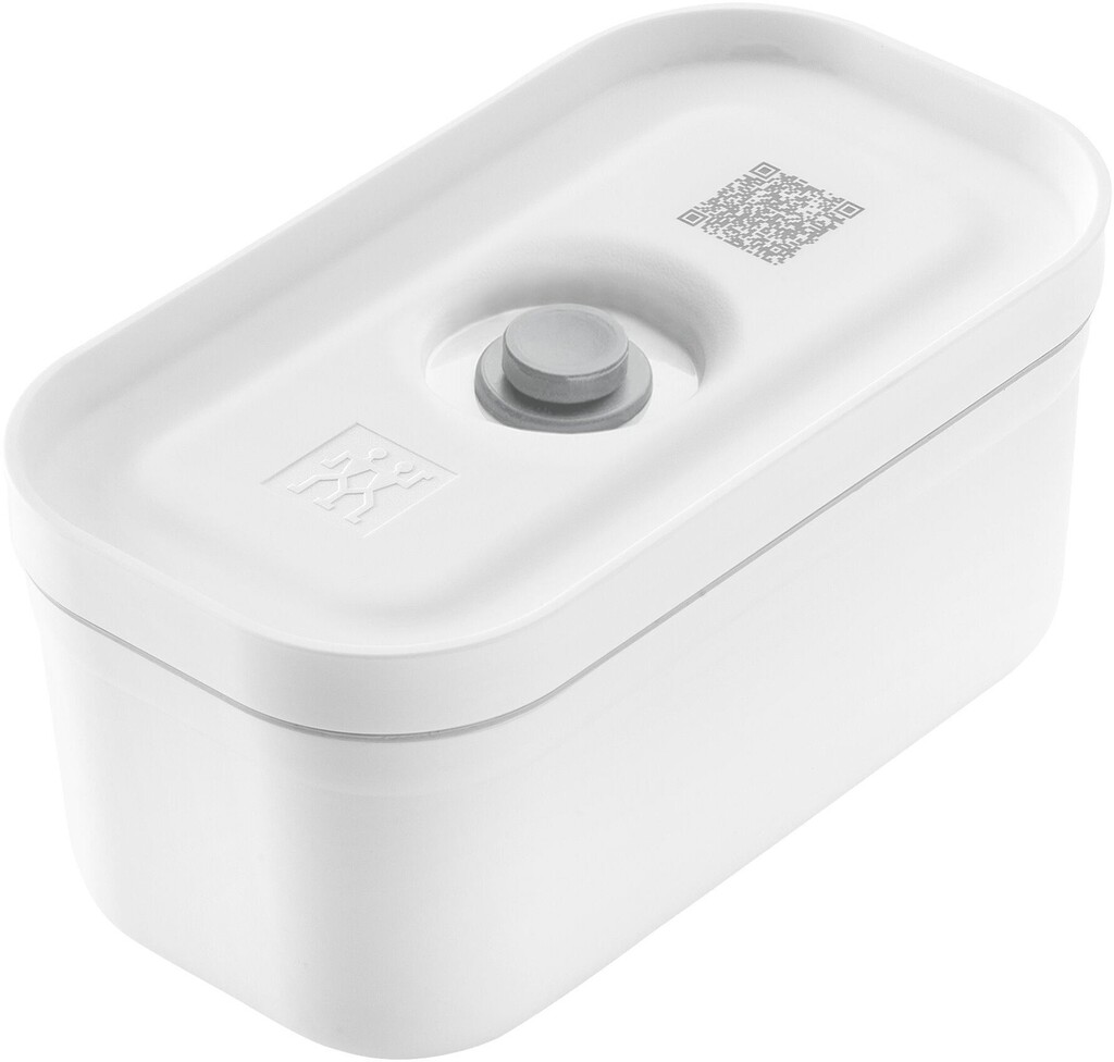 Vakuum-Lunchbox aus weißem BPA-freiem Kunststoff aus der ZWILLING Fresh & Save-Serie in Größe S. Mit dieser cleveren Lunchbox können Sie Ihr Lunchpaket ganz einfach am Vortag vorbereiten und am nächsten Tag noch Apfelstücke essen, die nicht braun geworden sind, oder ein Sandwich, bei dem das Brot noch weich ist. Die Lunchbox ist die kleinste in der Serie mit einem Fassungsvermögen von 0,5 l. Mit der ZWILLING Fresh & Save Vakuum-Serie können Sie Lebensmittelabfälle vermeiden, Lebensmittel weiter im Voraus vorbereiten und Lebensmittel bis zu fünfmal länger frisch halten als bei anderen, nicht vakuumierten Aufbewahrungsmethoden. Durch die Vakuumierung bleiben wichtige Vitamine und Nährstoffe in den gelagerten Lebensmitteln erhalten. Legen Sie die Lebensmittel in den Vakuumbehälter, lassen Sie sie vollständig abkühlen und setzen Sie dann die Pumpe auf den Deckel. Es dauert nur wenige Sekunden, und der Vakuumbehälter kann in den Kühl- oder Gefrierschrank gestellt werden, um die Lebensmittel frisch zu halten und Frostbeulen zu vermeiden. Der BPA-freie Kunststoff-Vakuumbehälter ist mikrowellen- und spülmaschinenfest sowie kühlschrank- und gefrierschrankgeeignet. Die Vakuumierbehälter sollten nicht vollständig gefüllt werden, da sonst kein Vakuum mehr erreicht werden kann. Diese Produkte können mit den Produkten aus den Co-Brand-Aktionen kombiniert werden. Laden Sie die Zwilling Culinary World App herunter und scannen Sie den QR-Code auf den Deckeln und Beuteln. Die App erinnert dann daran, wann die Lebensmittel zu verwenden sind und schlägt Rezepte vor, in denen sie verwendet werden können.Gefrierbar bis -20,00 °C