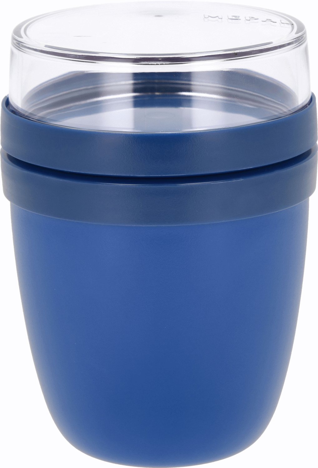 Mit dem Mepal Ellipse Lunchbecher in der lebendigen Farbe Vivid Blue verwandelst du deine Mahlzeiten unterwegs in ein praktisches und appetitliches Erlebnis. Dieser durchdachte Lunchbecher des renommierten Marke Mepal vereint intelligente Funktionalität mit zeitlosem skandinavischem Design, das perfekt zum modernen Lebensstil passt.Der innovative Lunchbecher verfügt über einen Hauptbehälter mit 300 ml Fassungsvermögen, der ideal für Salate, Joghurt oder andere Gerichte ist, sowie einen praktischen Topbehälter mit 120 ml, der sich perfekt für Beilagen wie Müsli, Nüsse, Obst oder Dressing eignet. Diese clevere Aufteilung sorgt dafür, dass verschiedene Zutaten getrennt bleiben, bis du bereit bist, sie zusammen zu genießen – wodurch die Frische und Konsistenz aller Elemente deiner Mahlzeit erhalten bleibt.