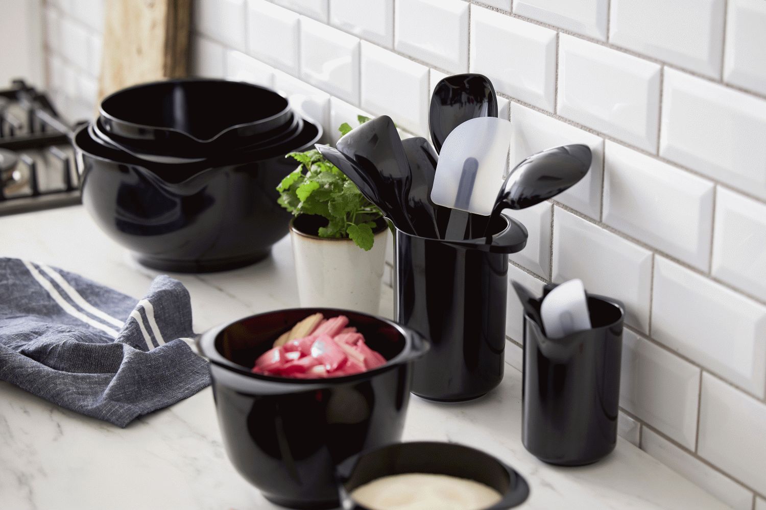Die flexible Beschaffenheit des Silikons gewährleistet, dass du jeden Teigrest mühelos von den Schüsselrändern löst – nichts geht verloren, und du nutzt deine Zutaten optimal aus. Das zeitlose schwarze Design verleiht dem Küchenhelfer eine elegante Ausstrahlung, die sich harmonisch in jede Kücheneinrichtung einfügt.