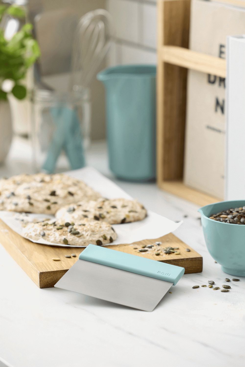 Das charakteristische Nordic Green verleiht deiner Küche eine frische, natürliche Note und fügt sich dabei harmonisch in jeden Einrichtungsstil ein. Dieses durchdachte Design stammt vom renommierten dänischen Studio VE2 und repräsentiert das Beste des skandinavischen Küchendesigns. Die zeitlose Ästhetik macht diesen Teigschaber zu einem echten Blickfang, der Funktionalität niemals der Optik opfert.